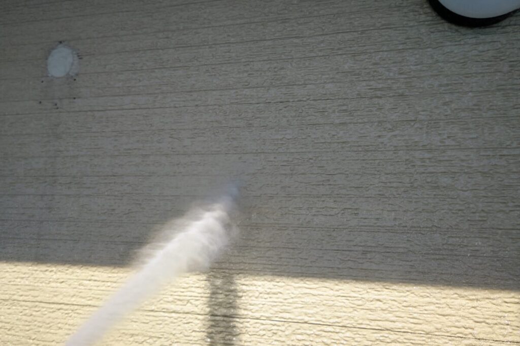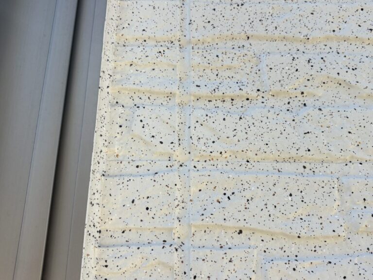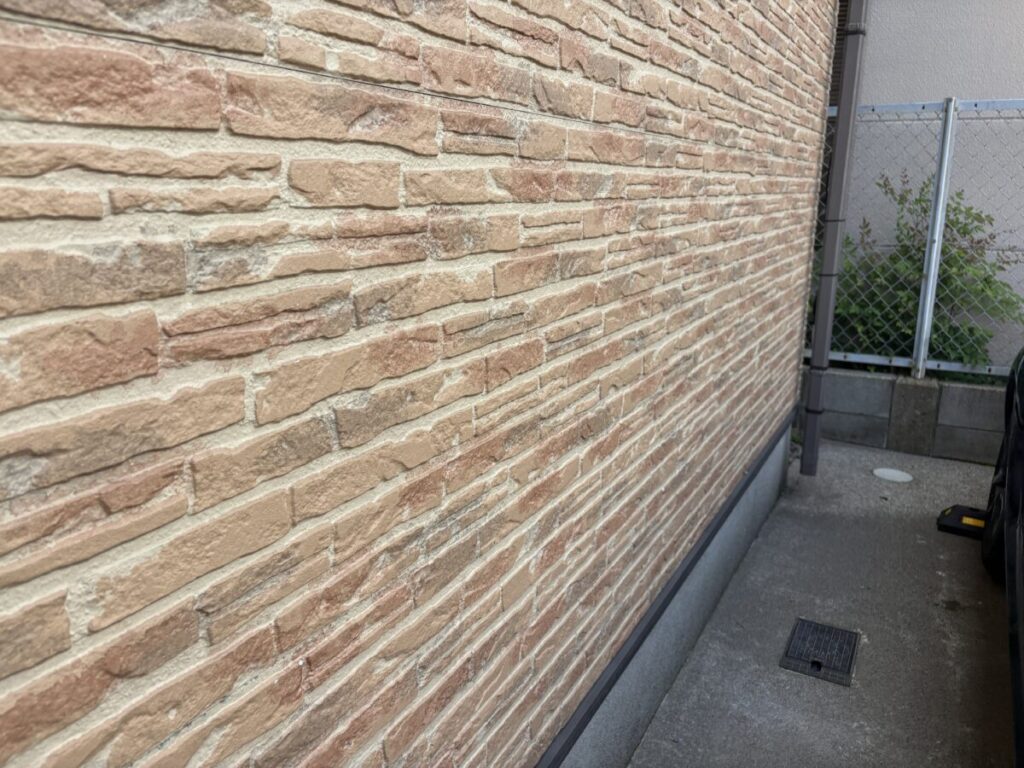 現状では大きなひび割れや欠損は見受けられませんでしたが、この状態が続くと汚れが付着しやすくなり、外壁材への負担も大きくなる可能性がありました。