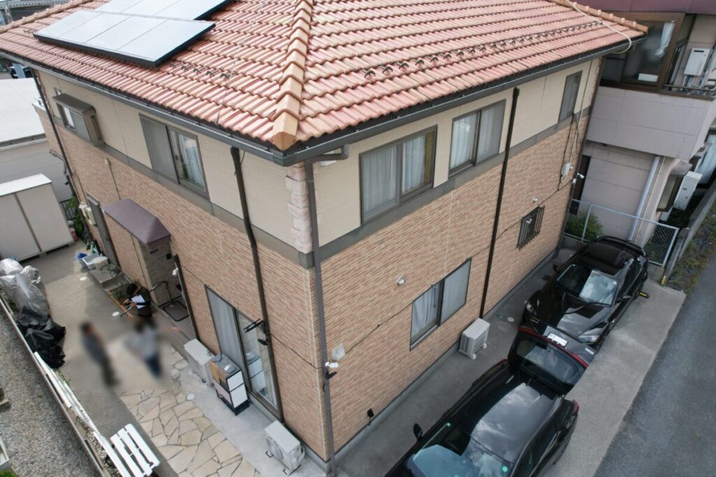 今回の外壁塗装では、Luxury無機を使用し、建物全体を暖色系でまとめたやわらかい印象の外観へと仕上げました。