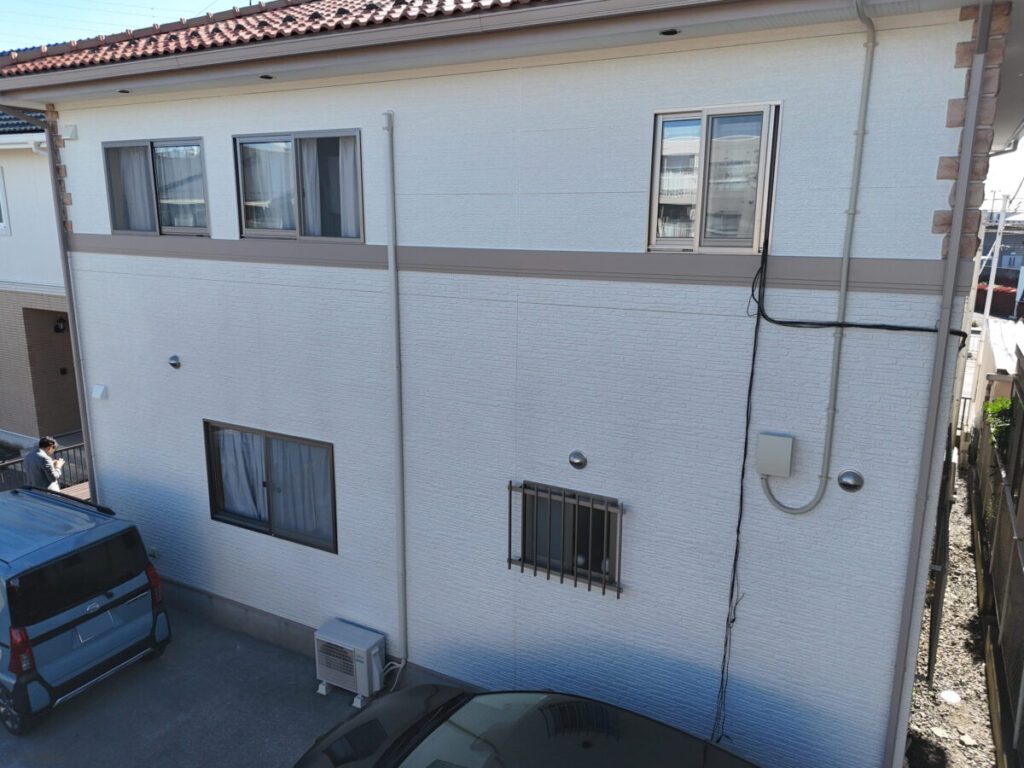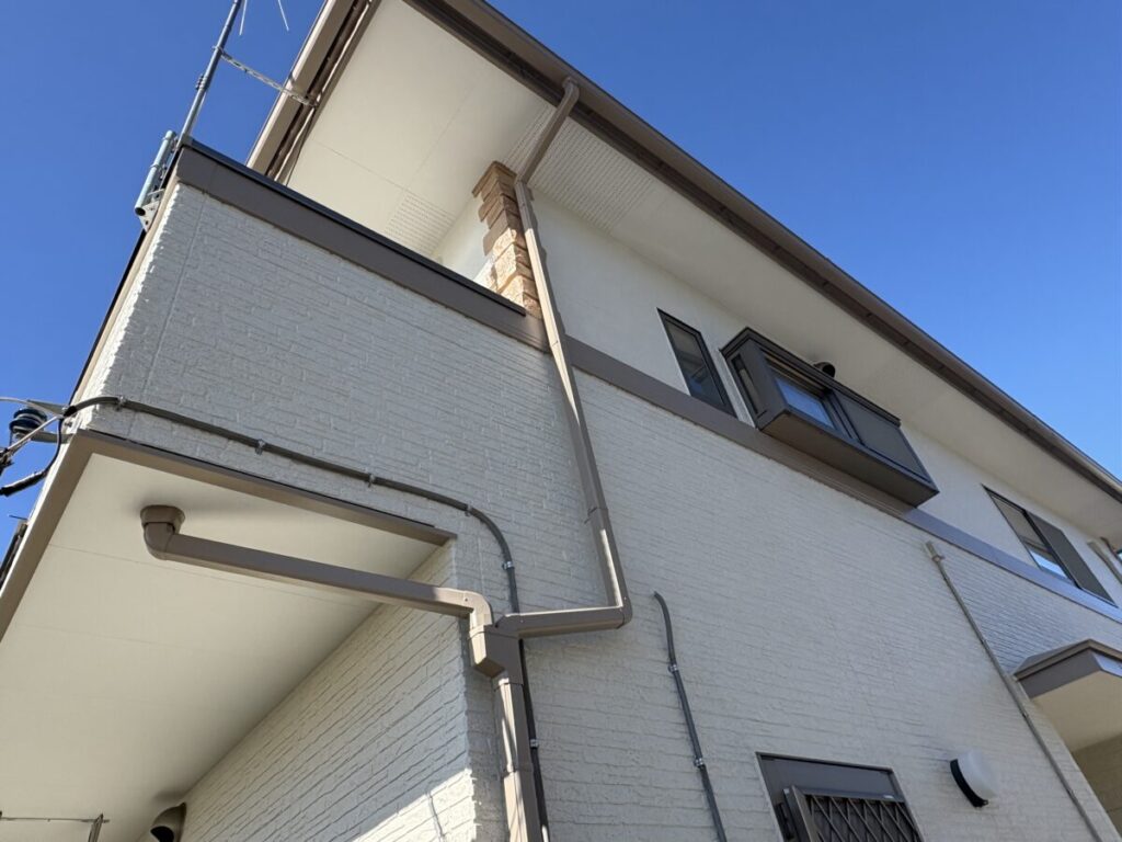 施工前と比べて色味が整い、外観全体に統一感が生まれ、落ち着きのある雰囲気へと変化しています。