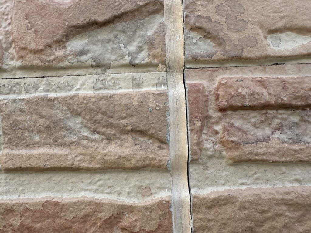 現状では大きなひび割れや欠損は見受けられませんでしたが、この状態が続くと汚れが付着しやすくなり、外壁材への負担も大きくなる可能性がありました。