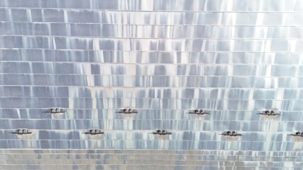 ドローンによる診断の結果、棟板金を固定している釘の浮きが見受けられました。
