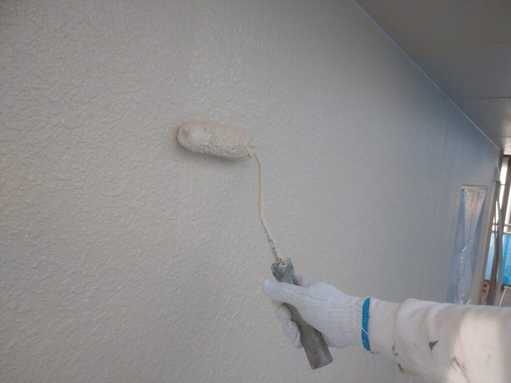 中塗りは、必要な塗膜の厚みを確保し、塗料本来の性能を安定して発揮させる工程です。