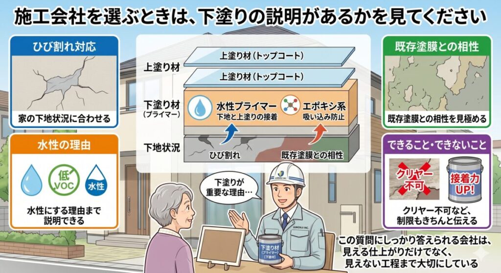 施工会社を選ぶときは、下塗りの説明があるかを見てください