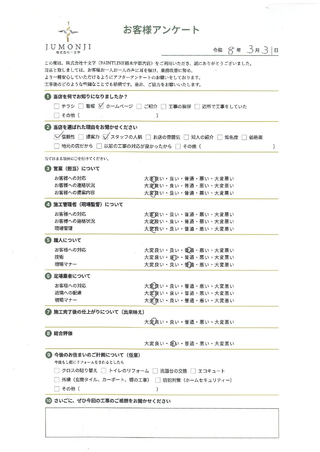 十文字では、地域密着の強みを活かし、宇都宮市内・近郊エリアなら最短即日で現地診断に対応します。