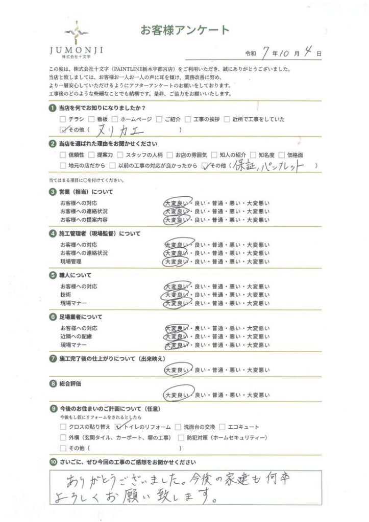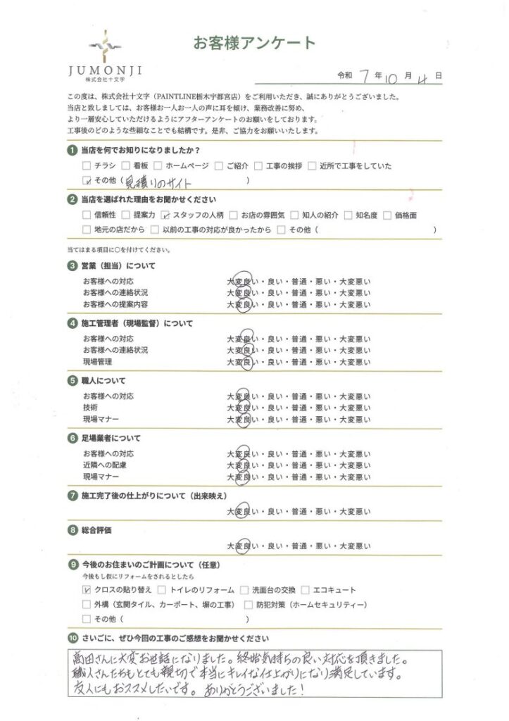 ご利用いただいたお客様の声– 宇都宮エリア口コミ件数No1!! –